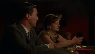 El inmediato proceso de reconciliación comienza con un Draper que encuentra las cintas de Sterling (aquellas en las que lo vimos “escribir” sus memorias en el capítulo anterior), y se las pone a Peggy para que escuche la sarta de secretos mejor guardados y las mayores rajadas que el loco del pelo blanco suelta en relación a algunos de sus prójimos (especialmente el viejo Cooper), dándose de esta manera tan sucinta una pincelada más a su figura soez e infame. A esto le sigue una cena muy “terrestre”, en un restaurante que nada se parece a los lujosos parajes a los que esta serie nos tiene, y unas copas (por no variar) con las que Draper pretende compensar el cumpleaños de su empleada predilecta. Con un tono mucho más tenue, calmado y dialogado, su velada transcurre entre revelaciones mutuas de sus reservas más profundas, los intentos fallidos de lecciones de moralidad y la admiración, nada hipócrita, por el trabajo creativo y la minuciosidad del otro, que se resume en una grandiosa sentencia de la boca de Don, y reza algo así como: "Lo horrible y lo bueno están muy cerca, ya no puedo encontrar la diferencia".