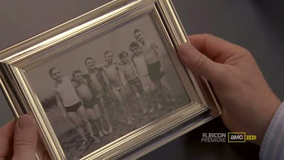 Más tarde, en el despacho de Wheeler, vemos aquella misma foto que vio Katherine tanto en las pertenencias de su difunto marido como en las del igualmente malogrado en misteriosas circunstancias Gerald Bradley. Una foto antigua de siete niños cogidos de los brazos. Algo me dice (y no he tenido que pensar mucho) que esos niños acabarían fundando la compañía/hermandad/loquesea de marras. Ahora bien, si dos de esos hombres son los ya fallecidos Rhumor y Bradley, quedarían aún otros cinco. Como cinco son los comensales de la compañía: Spangler, Wheeler, Gilbert y otros dos cuyo nombre desconocemos. Rubicon empieza a engendrar su propia mitología.