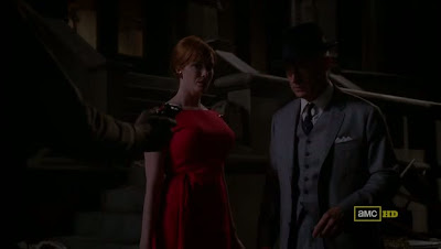 Para nuestra sorpresa, después de la velada, un individuo les asalta y se lleva sus pertenencias más valiosas: no estamos en ese mundo ideal que la publicidad nos pinta y nos vende. La cuestión es que se lleva el anillo de boda de Joan, el señuelo del hombre que se fue a la guerra y que la tiene en vilo día y noche. Más debilitada que nunca, necesitada de protección y cariño, se lanza con decisión a los brazos de Sterling a la luz de la noche, en plena calle. La mañana siguiente, la réplica de una Joannie, algo más calmada, ante el “I'm sorry” de Roger, lo dice todo: “I'm not sorry, but I'm married”. Sin duda, dos personajes que siempre han permanecido en un segundo plano, pero sin los cuales esta serie no sería la misma.