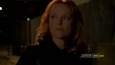 La cuestión es que Andy acaba descubriendo la pistola en el bolso de Will, y en vez de asustarse, parece que le alimentó el morbo tanto como para lanzarse de lleno, y Travers, que tampoco es de piedra, aunque a veces lo parezca, no se resiste. Por fin Rubicon nos ofrece un momento pasional, incluso más tórrido de lo que cabría esperar en un relato de personajes tan fríos y desapasionados. Enseguida crece entre ellos el cariño y, lo que es más importante, la confianza, en una serie caracterizada precisamente por su total ausencia en cualquier ámbito. Por cierto, Maggie realiza una breve aparición, pero parece que se le ha dado carpetazo definitivo a su asunto, y no creo que la volvamos a ver.