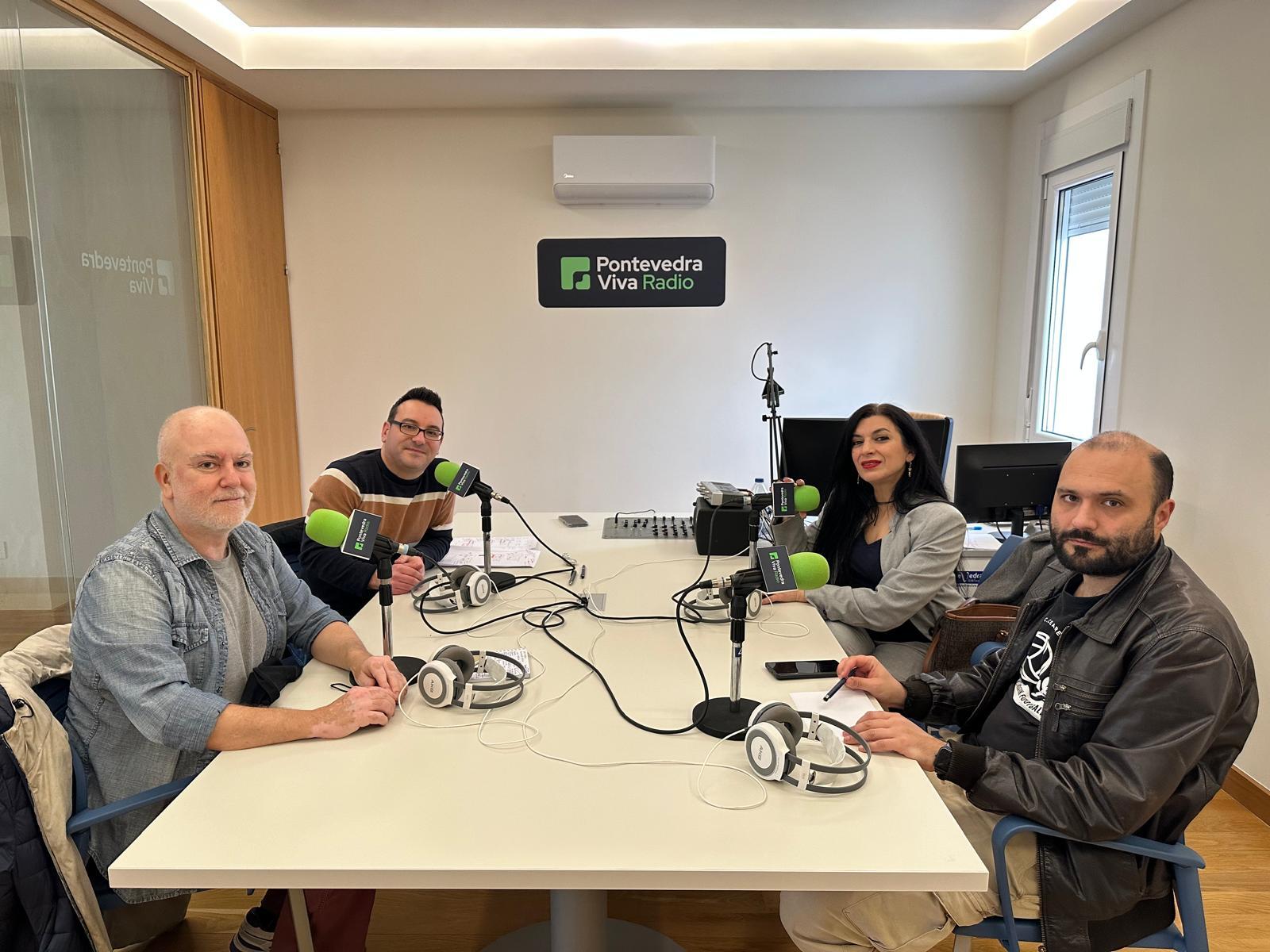 Santiago Agopián, Seve Casalderrey, Lorena Romero Núñez y Julio C. Piñeiro en los estudios de Pontevedra Viva Radio